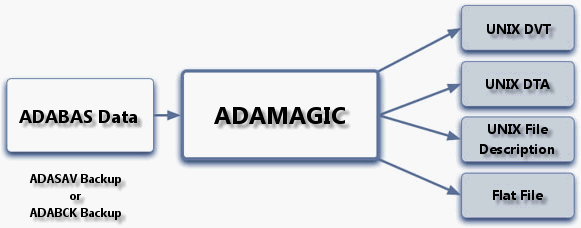 | Adamagic | Es capaz de producir múltiples ficheros secuenciales con una sola lectura de un backup Adabas producido en el mainframe, reduciendo de horas a minutos ciertos procesos batch. |